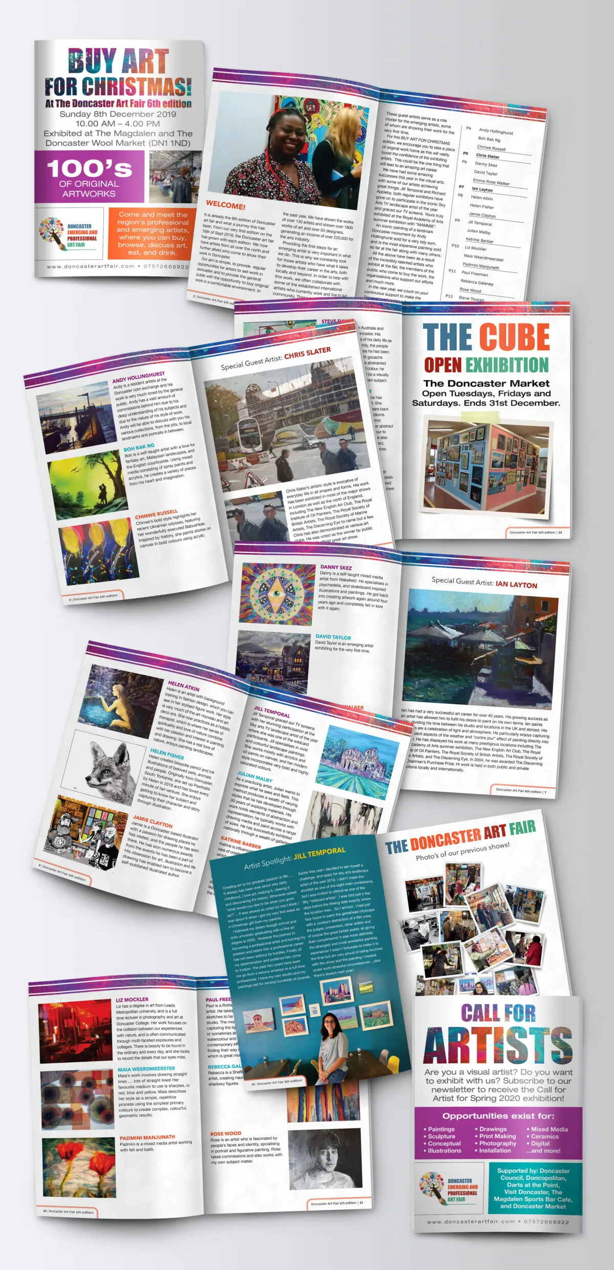The result is a stronger portfolio story that shows range without losing coherence: packaging for SheaByNature, and identity and exhibition materials for Doncaster Art Fair, all connected through a long-term founder collaboration. This grouping is an inference based on the overlap in founder, service type and visual scope across the two live entries.
