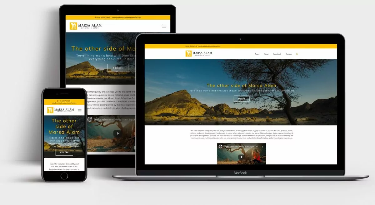 Website design and video-led presentation for an adventure safari experience in Marsa Alam, Egypt.
