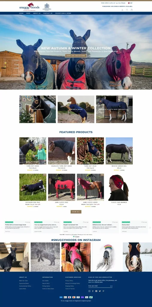 We designed a Shopify experience for Snuggy Hoods that reflects the brand’s premium equestrian positioning while supporting growth across the UK and Australia.